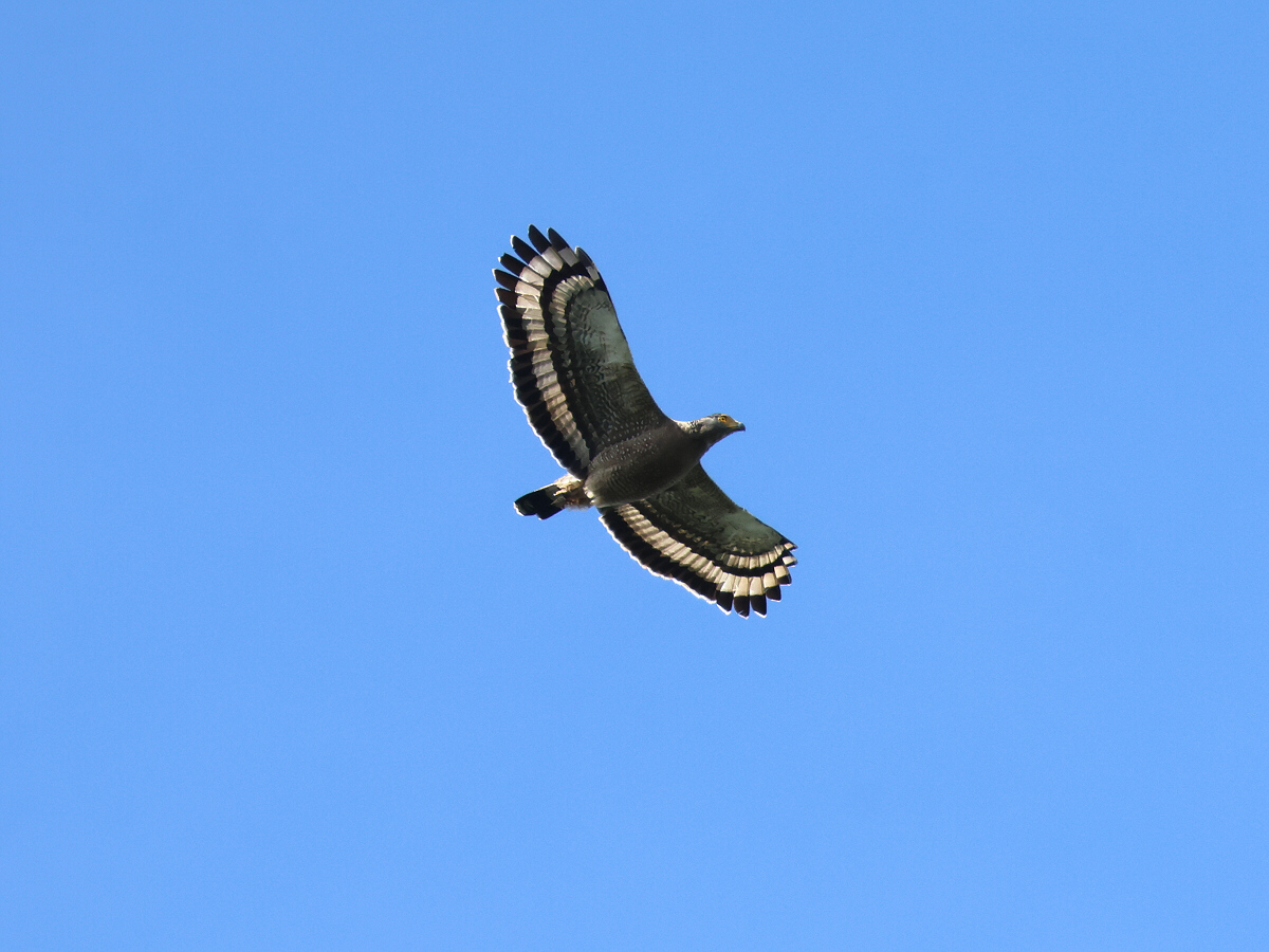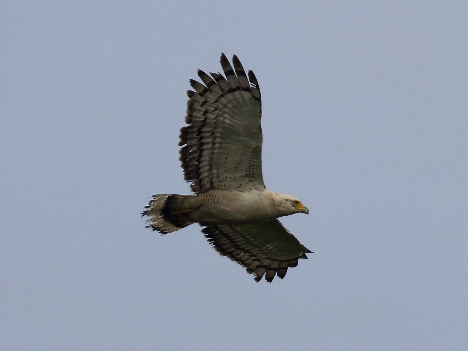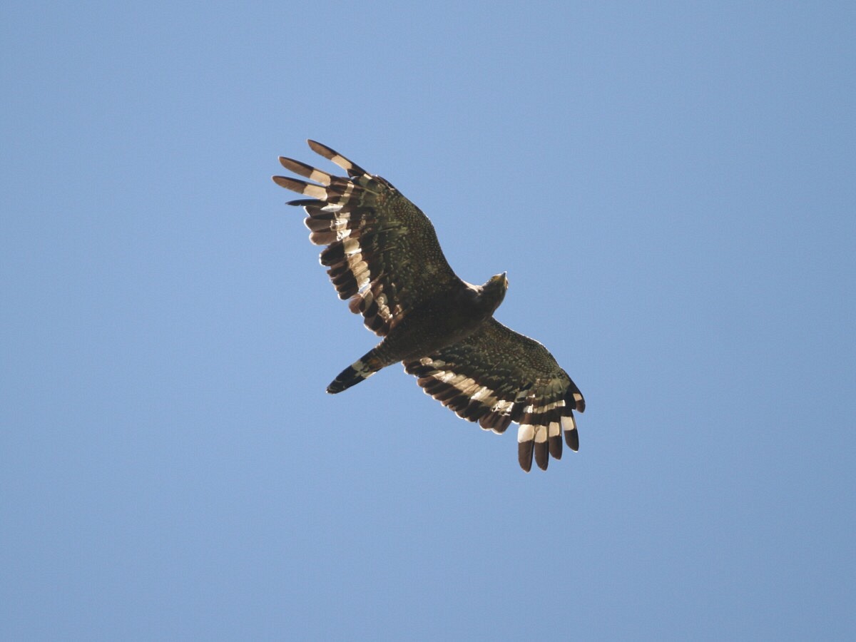淡く、胸に暗い横帯と尾羽の暗色帯が2本ある。Andaman Serpent Eagle(Spilornis elgini)という別種も見られる。
